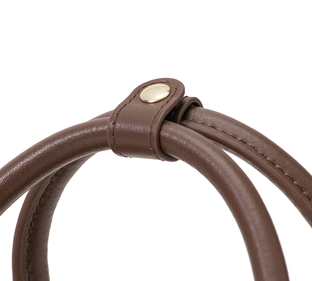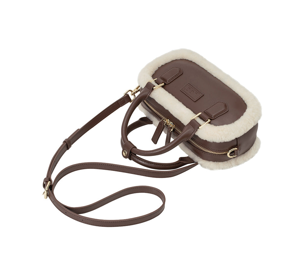 Introducing the Australian Shepherd Shayla Bag, made with Australian sheepskin wool and genuine leather for durability and style. Available in Chestnut and Chocolate to suit your style preferences, this bag is the perfect choice for elevating a variety of outfits. Whether you are running errands or going out for coffee, this bag fits all your daily needs.