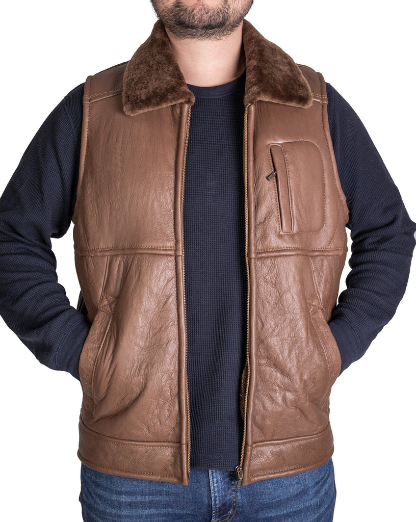 Men Australian Sheepskin Wool Nappa Leather Vest