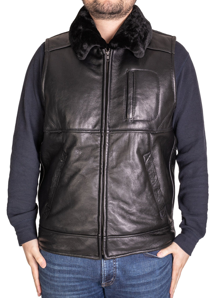 Men Australian Sheepskin Wool Nappa Leather Vest #9988003