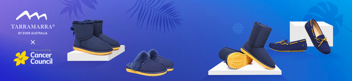 Our Cancer Council collection includes our classic ugg boots, slippers, and moccasins in the iconic Cancer Council brand colours of yellow and blue, so you can get comfy and cosy for a wonderful cause.