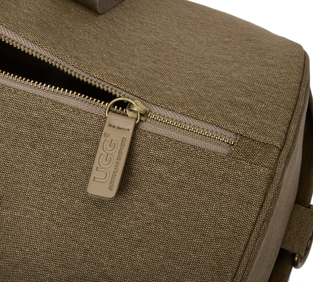 - Classic duffel silhouette with understated Australian Shepherd branding.