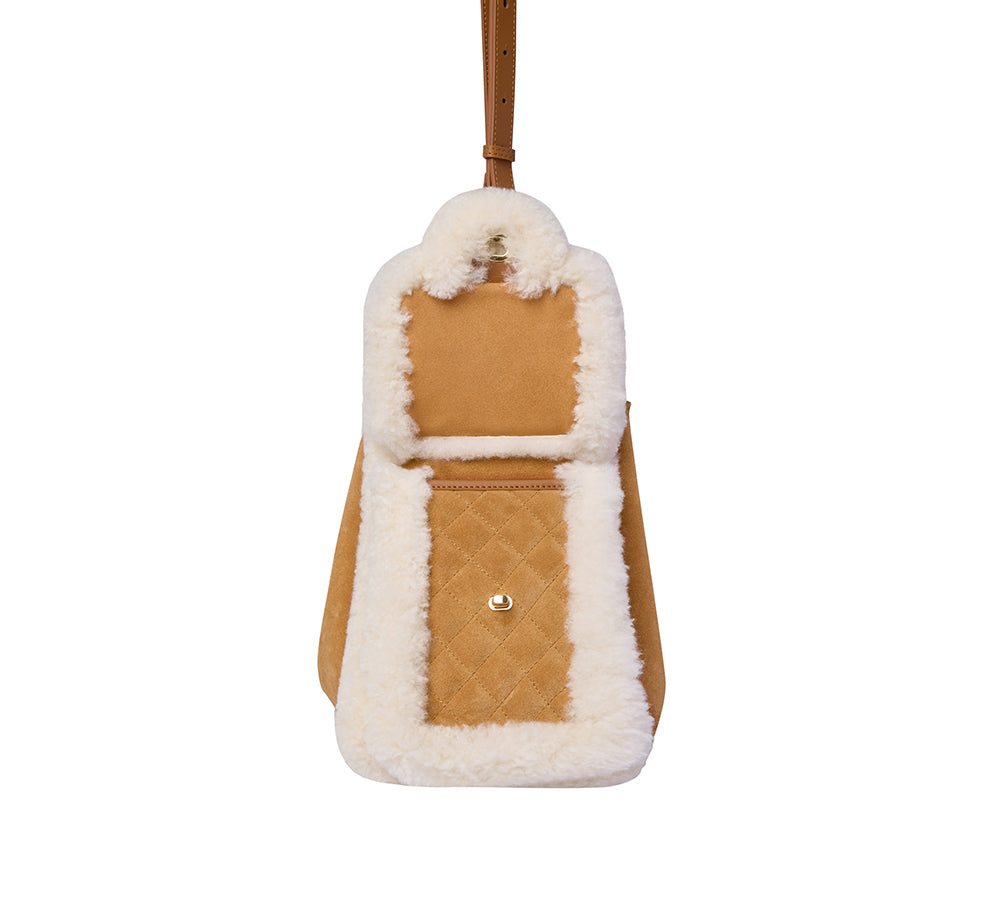 Quilted details make this shearling bag subtly elegant yet unforgettable.