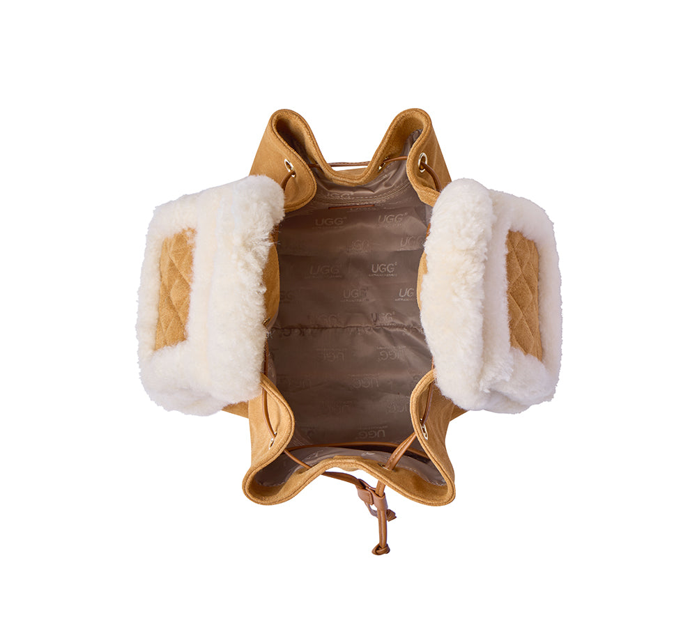 A quilted suede ugg tote bag that elevates even simple denim or coats.