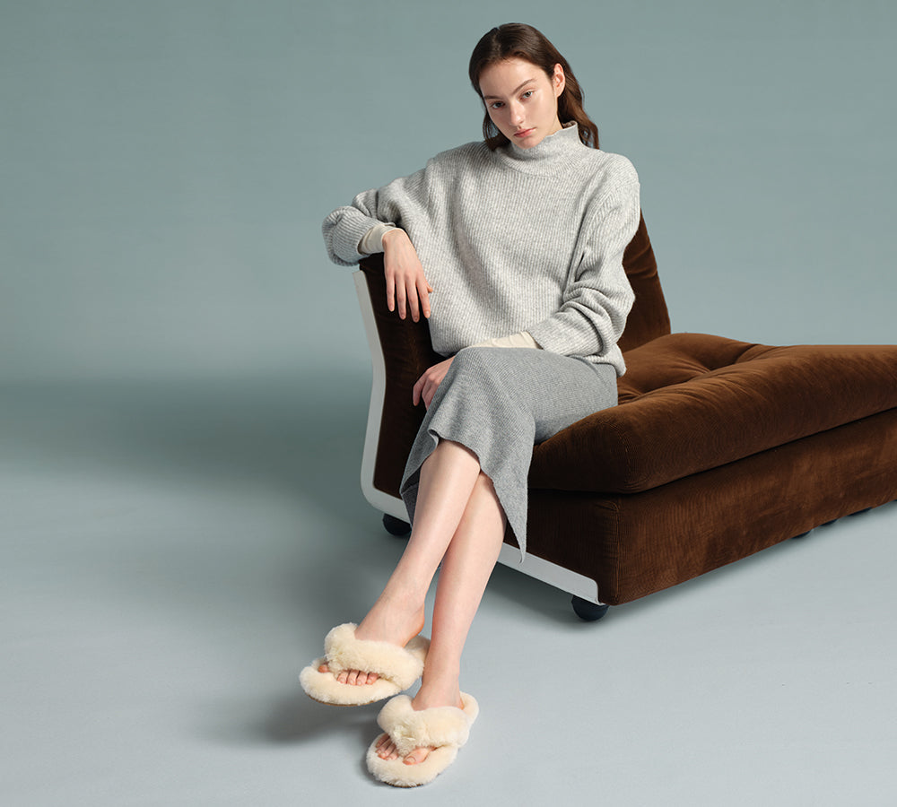 AUSTRALIAN SHEPHERD® UGG Thongs Women Fluffy Slides Farah #AS2086