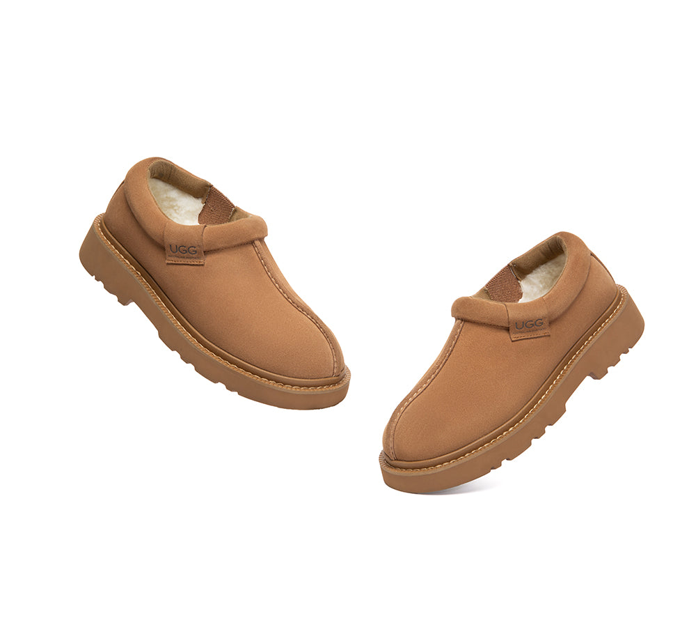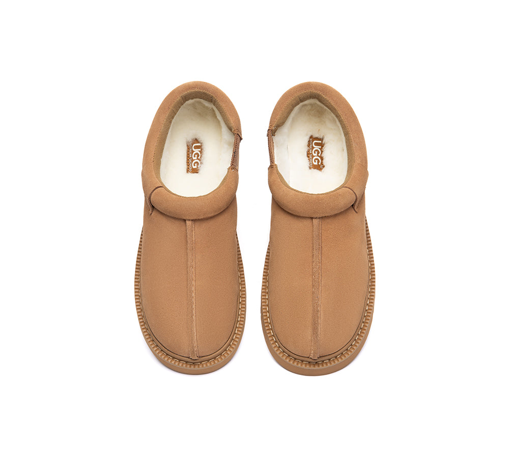 - Plush sheepskin wool lining keeps feet cozy in any season.