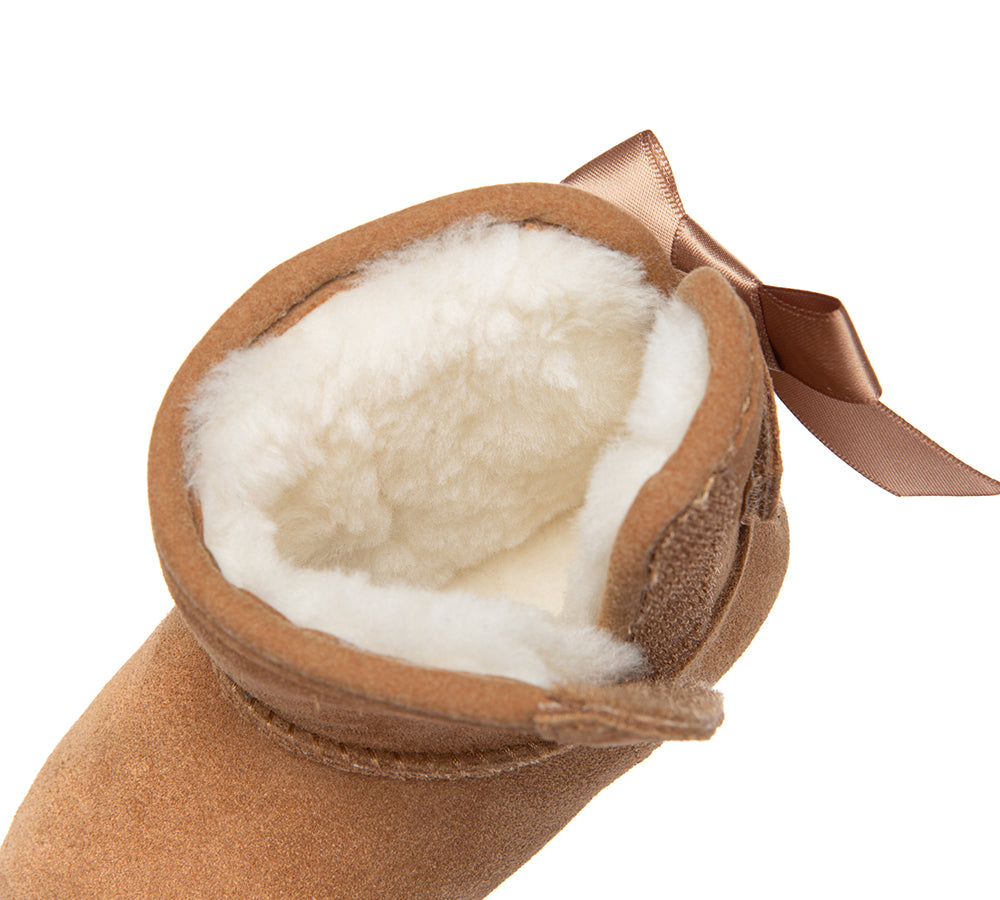 • Plush sheepskin wool lining keeps little feet warm and breathable.