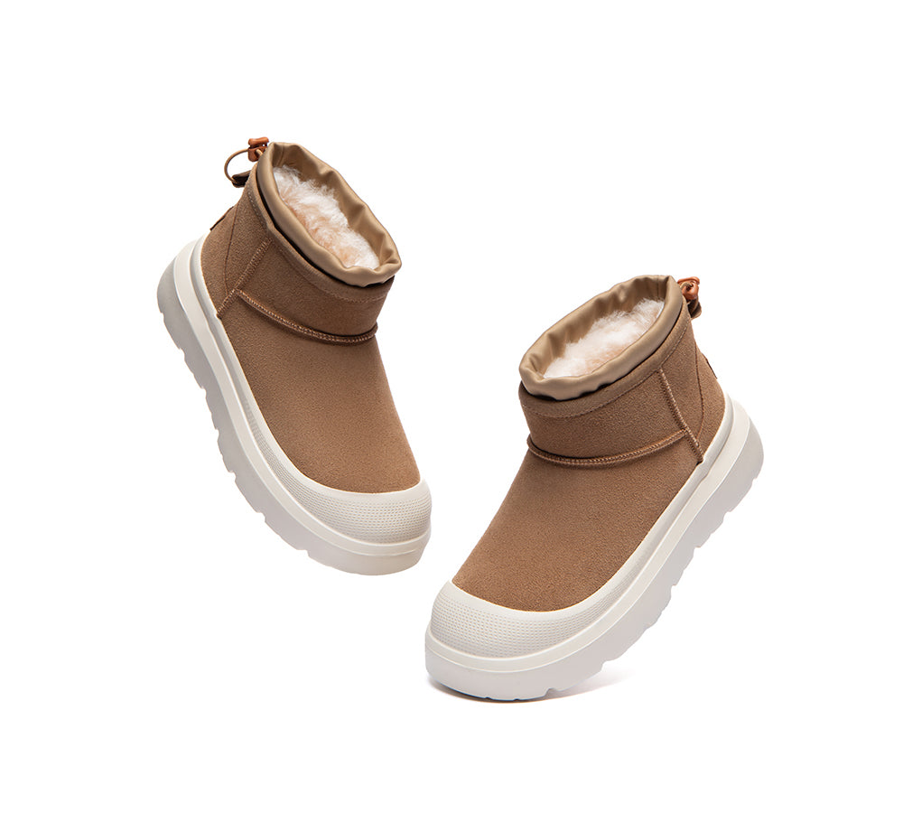 - Soft sheepskin wool lining wraps feet in natural warmth and everyday comfort.