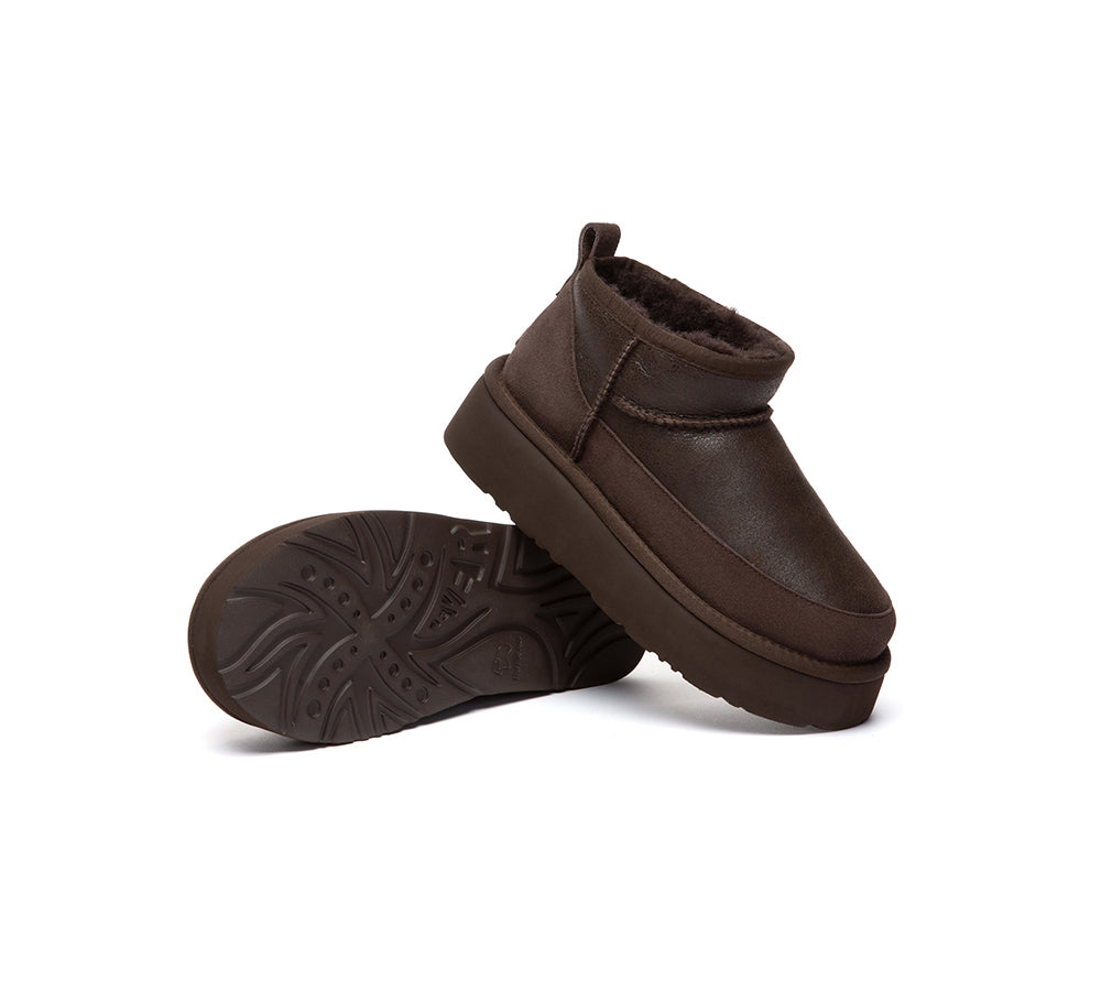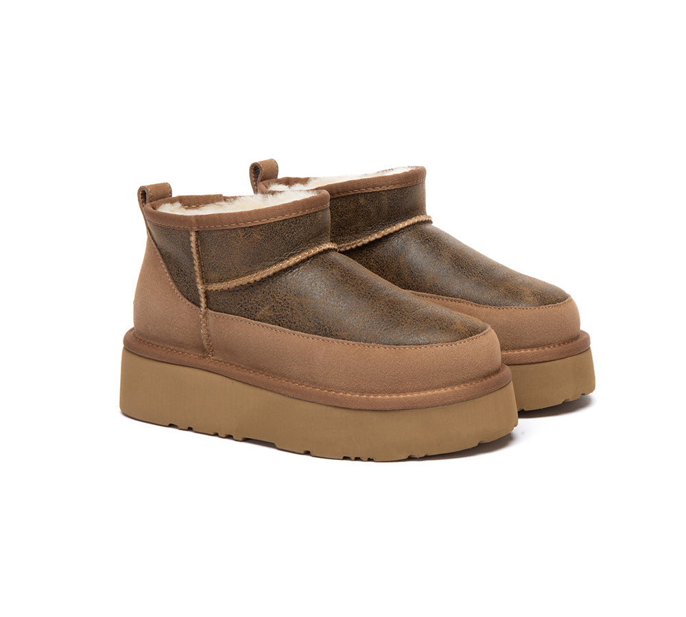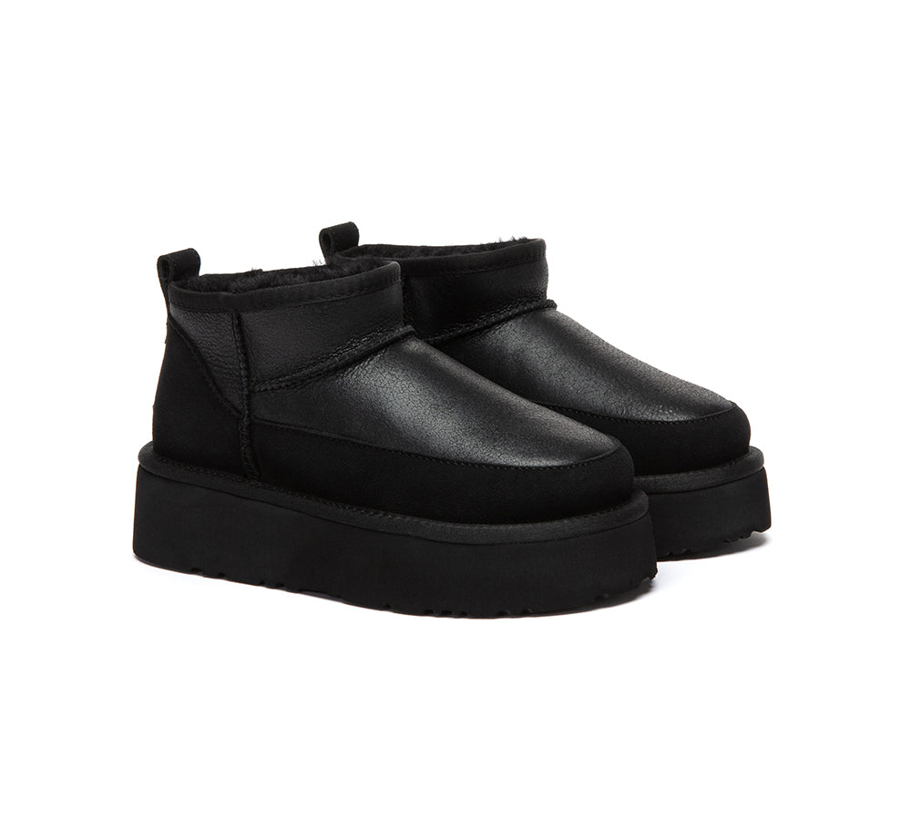 • Fully lined with sheepskin wool for breathable warmth in platform mini ugg boots.