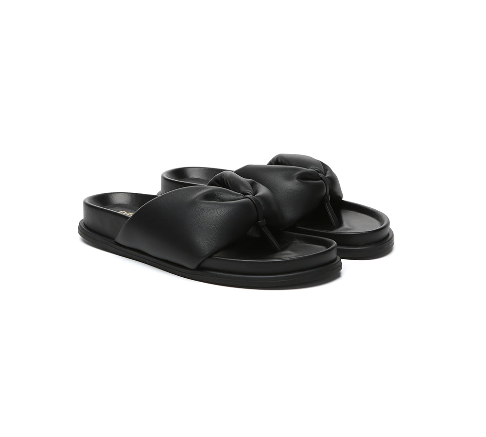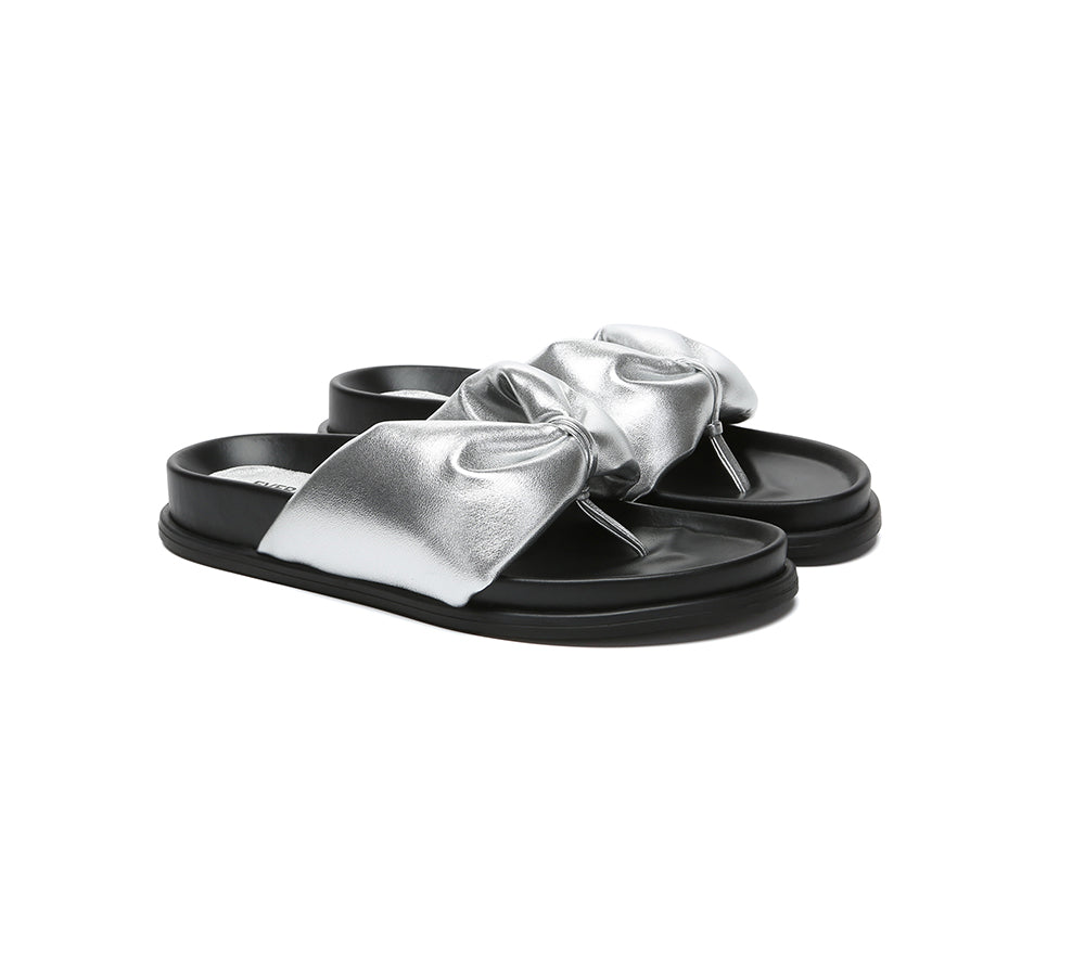 - Minimal slide sandals silhouette pairs easily with city and holiday outfits.