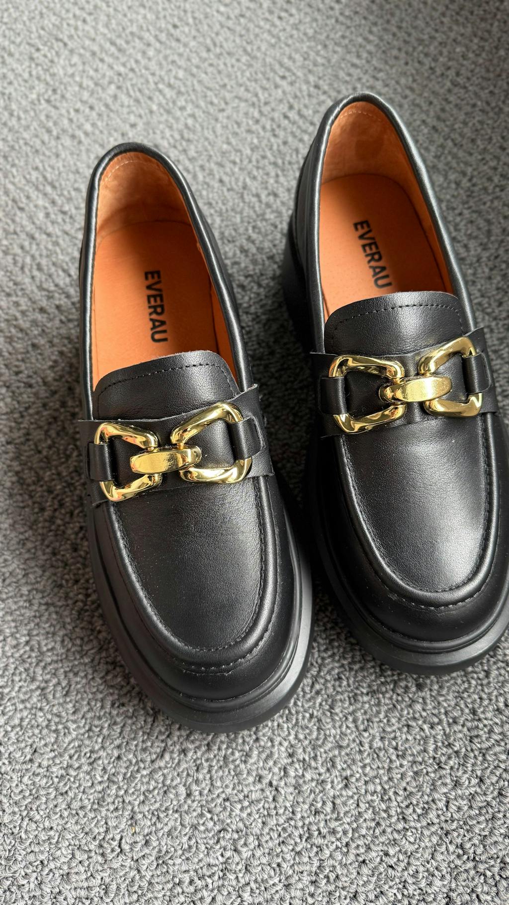 Step into comfort and style with the EVERAU Della Platform Loafers. Crafted from premium cow leather, these shoes offer a touch of femininity in a simple yet well-made design. With a roomy round-toe shape and breathable leather lining, your feet will stay comfy and dry. Versatile in its options of solid colours with metal decor, these flats are suitable for any occasion, making them perfect for all seasons.
